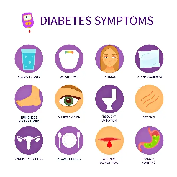 Unexplained weight loss can occur as the body breaks down fat and muscle for fuel. Over time, high glucose can damage nerves, causing numbness, tingling, or pain, particularly in the hands and feet (polyneuropathy).